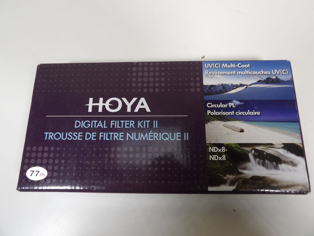 - Kit De Filtre Numérique Hoya 77 mm II (3 Filtres) contient un filtre UV, un filtre polarisant et un filtre ND.