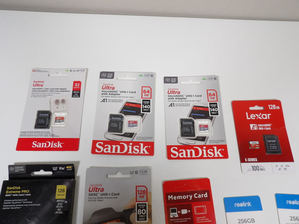 PHOTOGRAPHIE - Lot de 9 cartes mémoires - Cartes SD - Micro SDXC - Neufs - Différentes capacités et marques: Redlink, Sandisk, Lexar