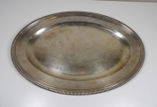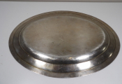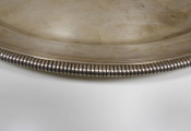 Plat ovale en argent (poinçon minerve), orfèvre Odiot (Paris) style empire, gravé aux armoiries de la branche des barons de Viviers (Berthier de Chemilly de Viviers). probablement commandé par Théodore Berthier de Chemilly de Viviers (1783 Tonerre-1855 Paris), 1er baron de Viviers. 49 x 35 cm, poids brut (1,8 kg), rayures.