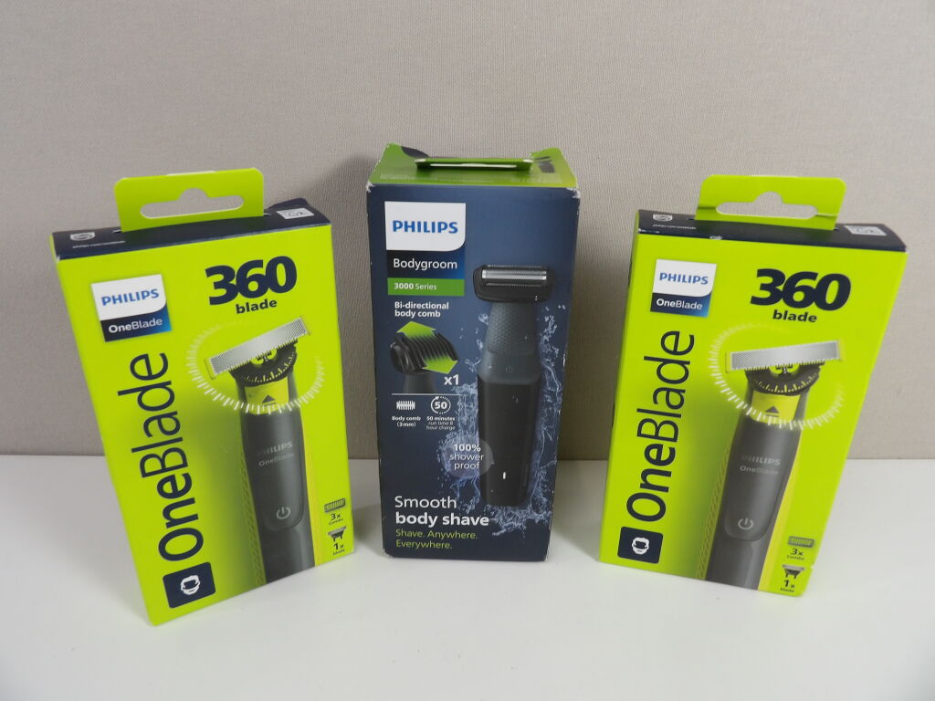 POUR HOMME : x2 ONE BLADE et x1 PHILIPS BODYGROOM 3000SERIES. Tout est neuf (mais certains emballages abimés).