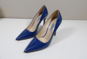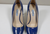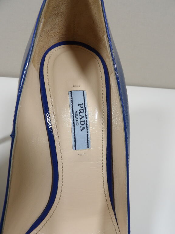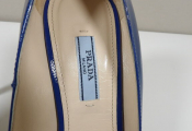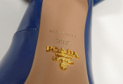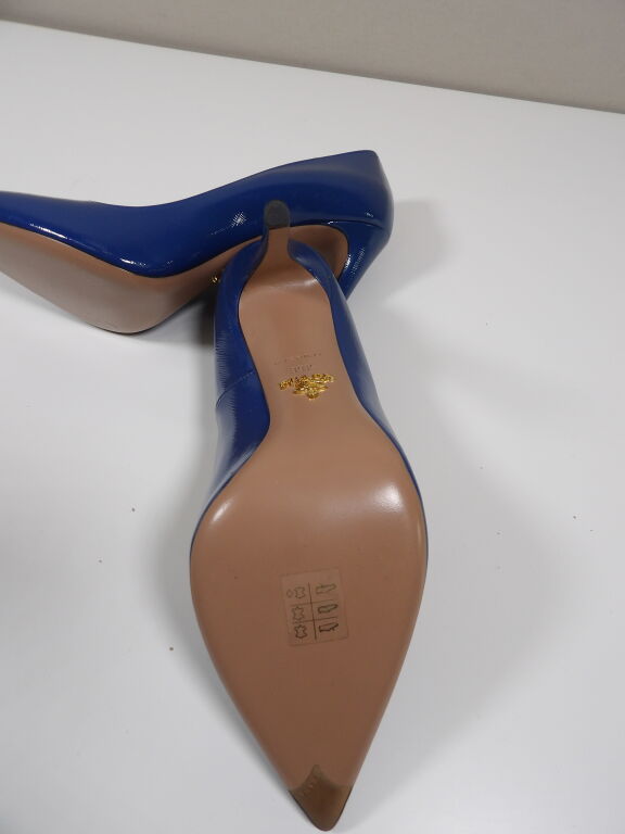 PRADA - Escarpins en cuir texturé / vernis coloris bleu - Taille 39.5 - Pas ou peu portés