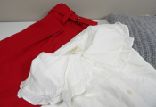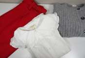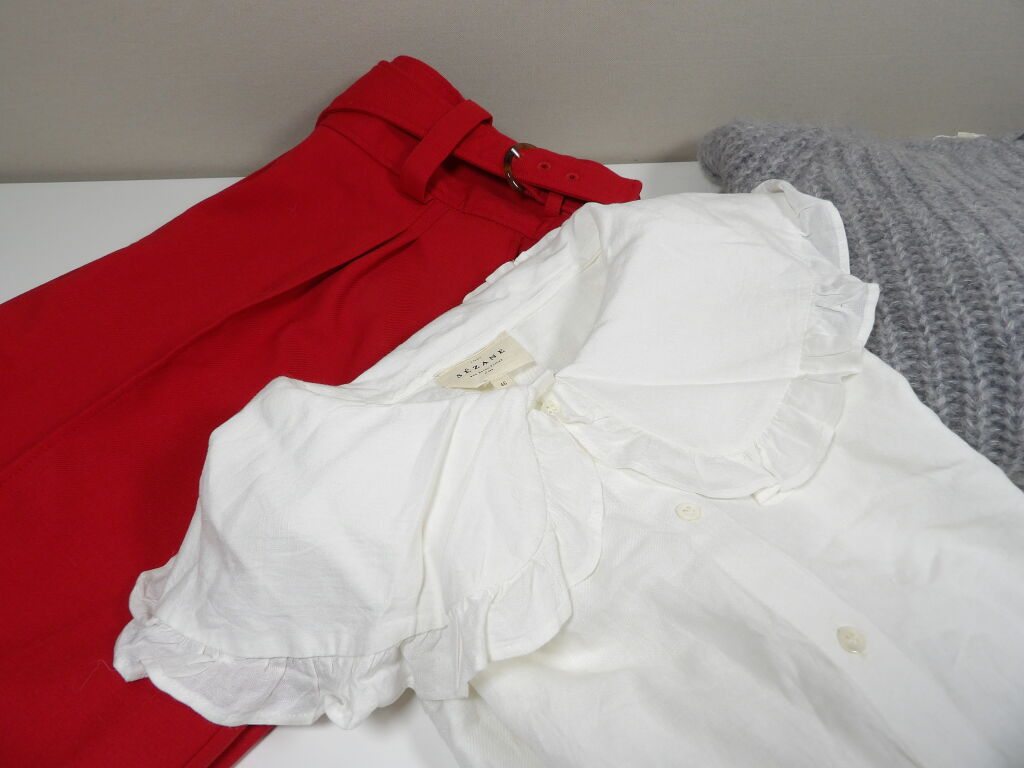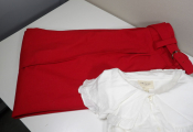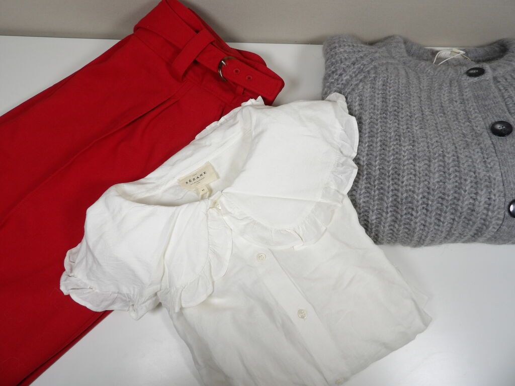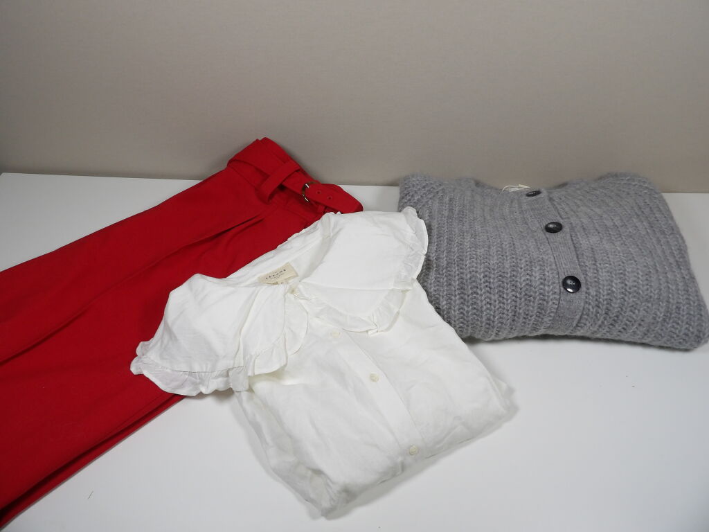 SEZANE : Ensemble T.46 / XXXL : pantalon rouge ALDO, avec chemise AMAEL et son gilet EMILE en gris chiné.