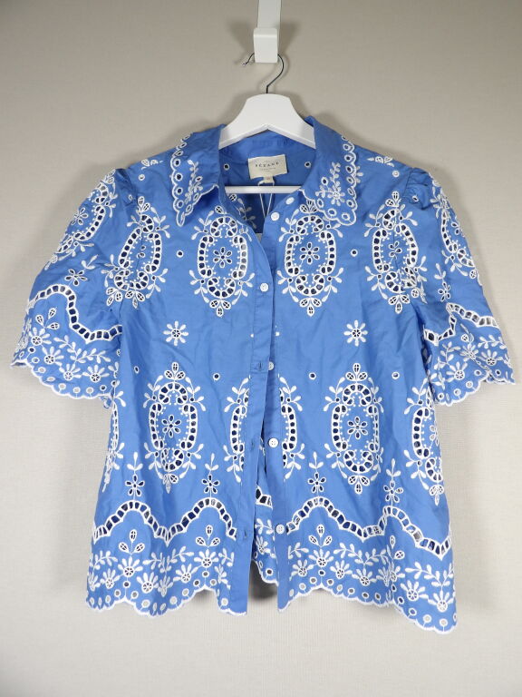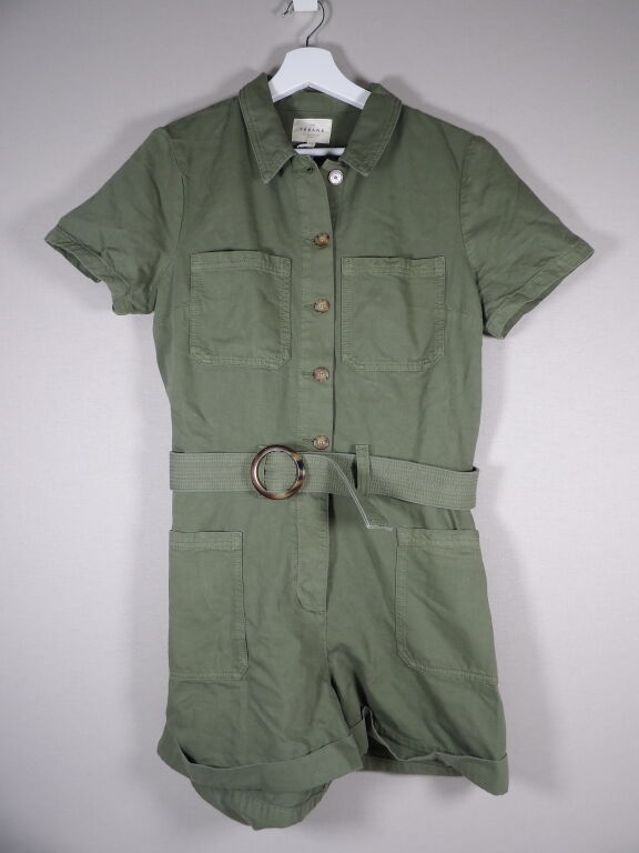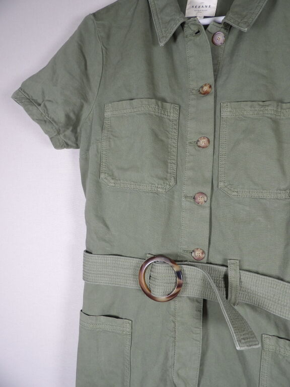 SEZANE Lot de x5 vêtements printemps / été en Taille 42 : Joli chemisier bleu broderie anglaise ELVIRA, Combinaison short kaki BENITA avec sa ceinture, Short New Rome ecru, Short vichy beige foncé EDWARD et un top JUAN noir en XL.