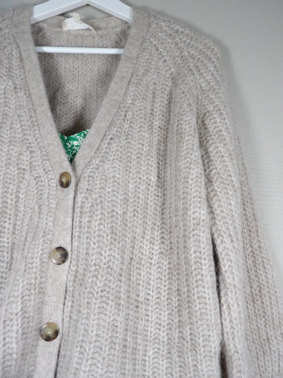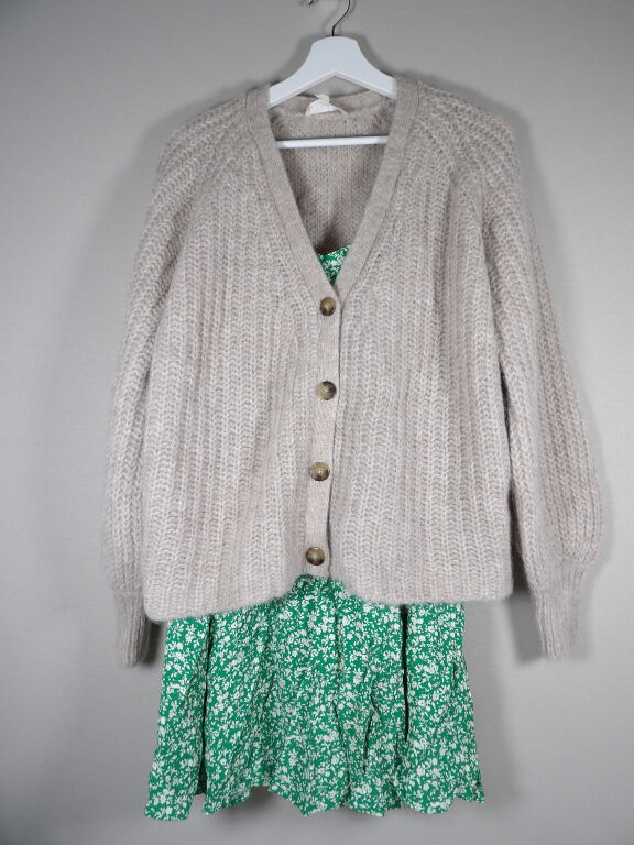 SEZANE Robe Salie Jardin vert en T38 avec son gilet pour la porter été comme hiver - Gilet Basile beige chiné en Taille M.