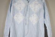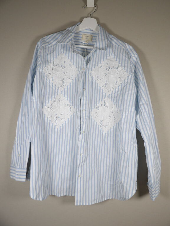 SEZANE T40 : Veste rouge MICHELE et x2 chemises : Blanches et bleues avec broderie MAXY et Blanc rouge ALLEN (Octobre Editions). On y inclut un totebag.