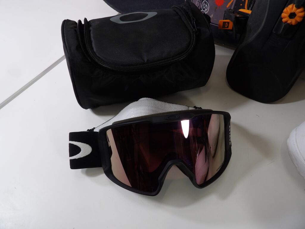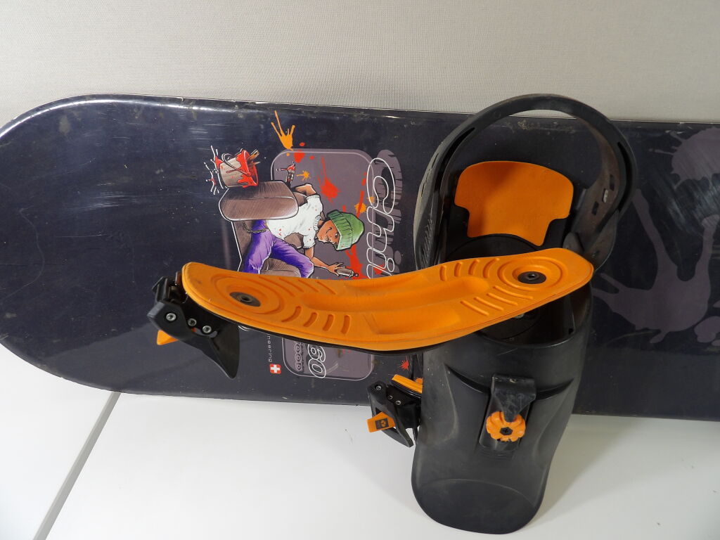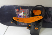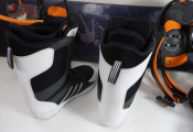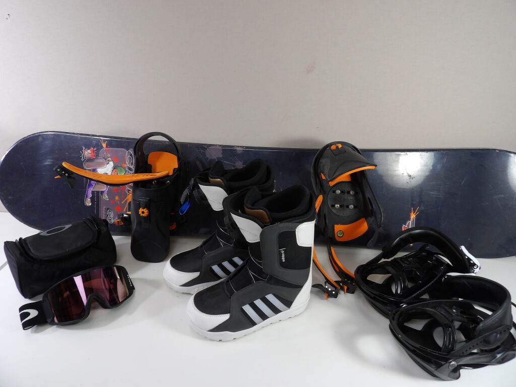 SNOWBOARD - Lot de x4 articles d'occasion vendus en l'état - : Planche de snow avec bottes de snow en taille 42 (Adidas), fixations Salomon Pact, et lunettes de soleil Oakley.