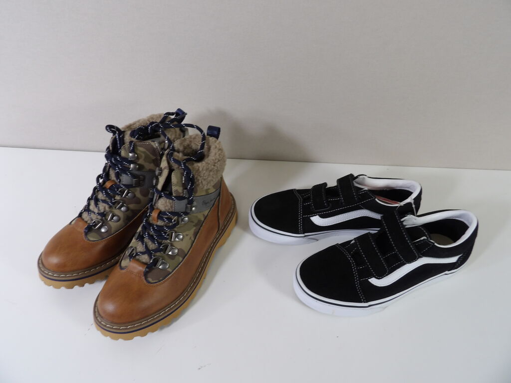 TAILLE 34 - Lot de 2 paires de chaussures NEUVES : Sneakers VANS et Bottines PEPE JEANS.