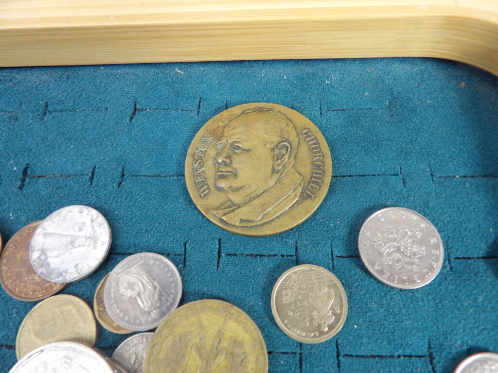 Une collection de monnaies françaises et du monde (environ 2 kg) une médaille Churchill