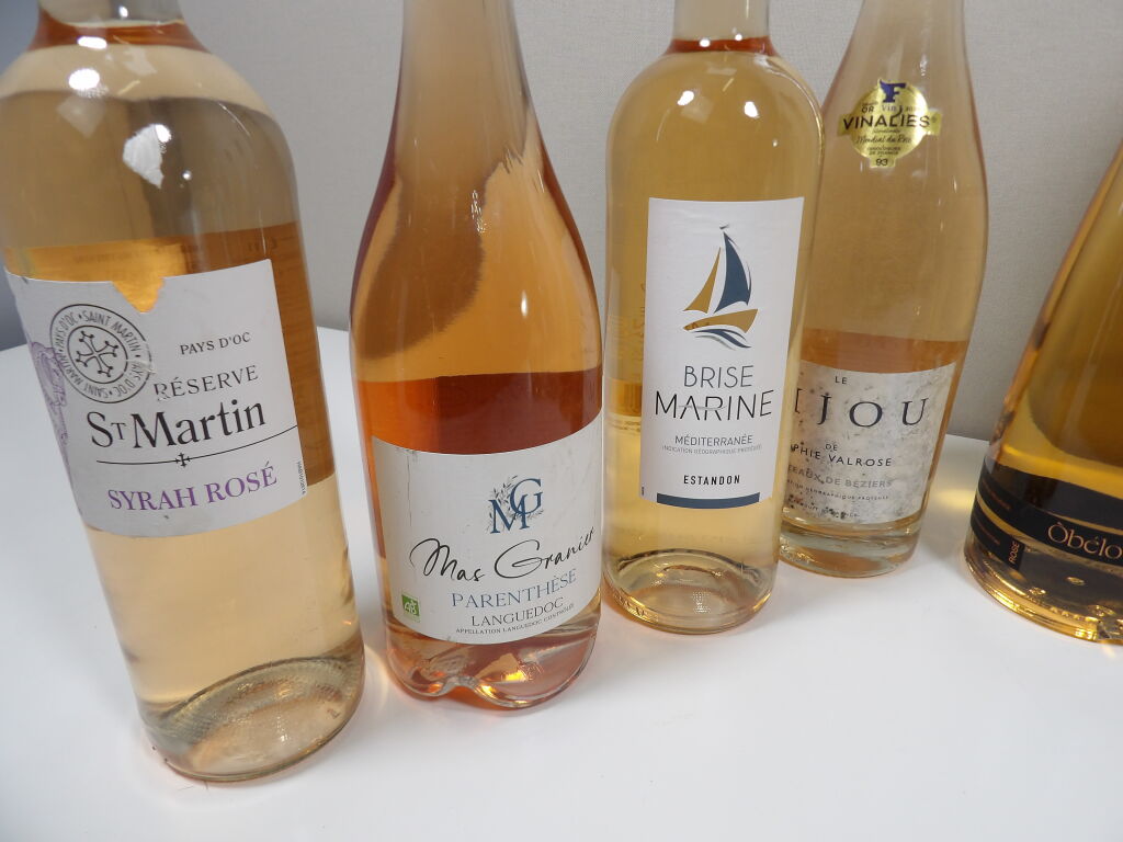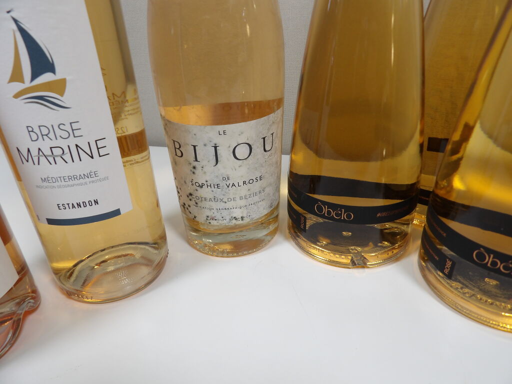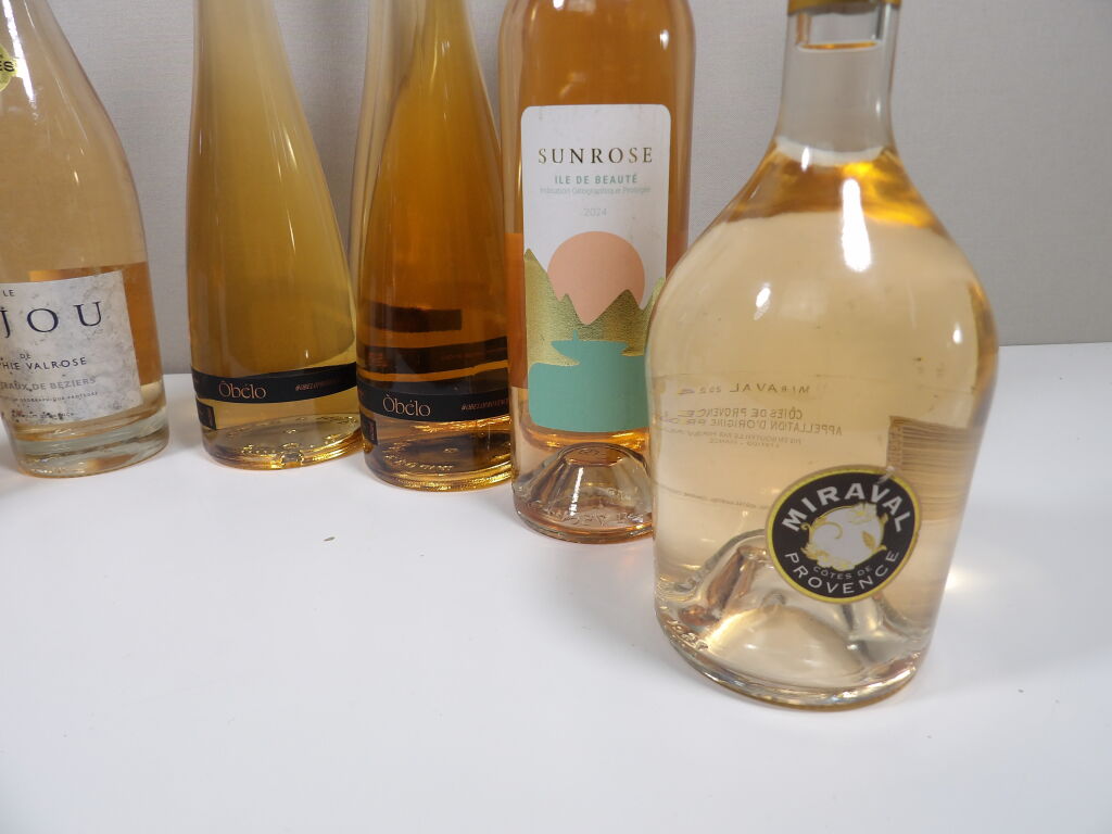 Vin rosé : 10 bouteilles dont 4x Obélo Côtes de Provence 2022, vin corse Sunrose 2024, Miraval (Côtes de Provence 2024, Languedoc Mas Granier cuvée Parenthèse2024, IGP Méditerrannée Brise Marine 2024, côteaux de Béziers "Le Bijou" de Sophie Valrose 2024 et un pays d'Oc réserve Saint Martin