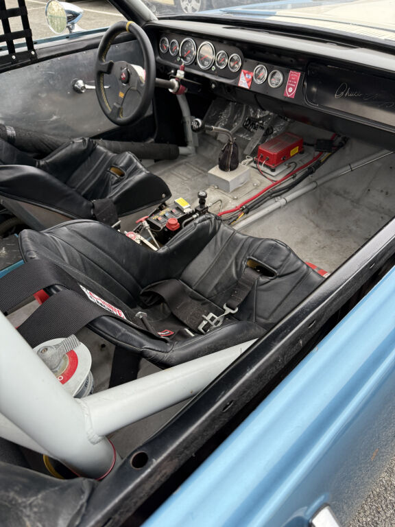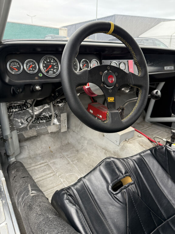- Habitacle dépouillé, sièges baquets vintage avec harnais, arceau de sécurité soudés 8 points et volant OMP extractible
