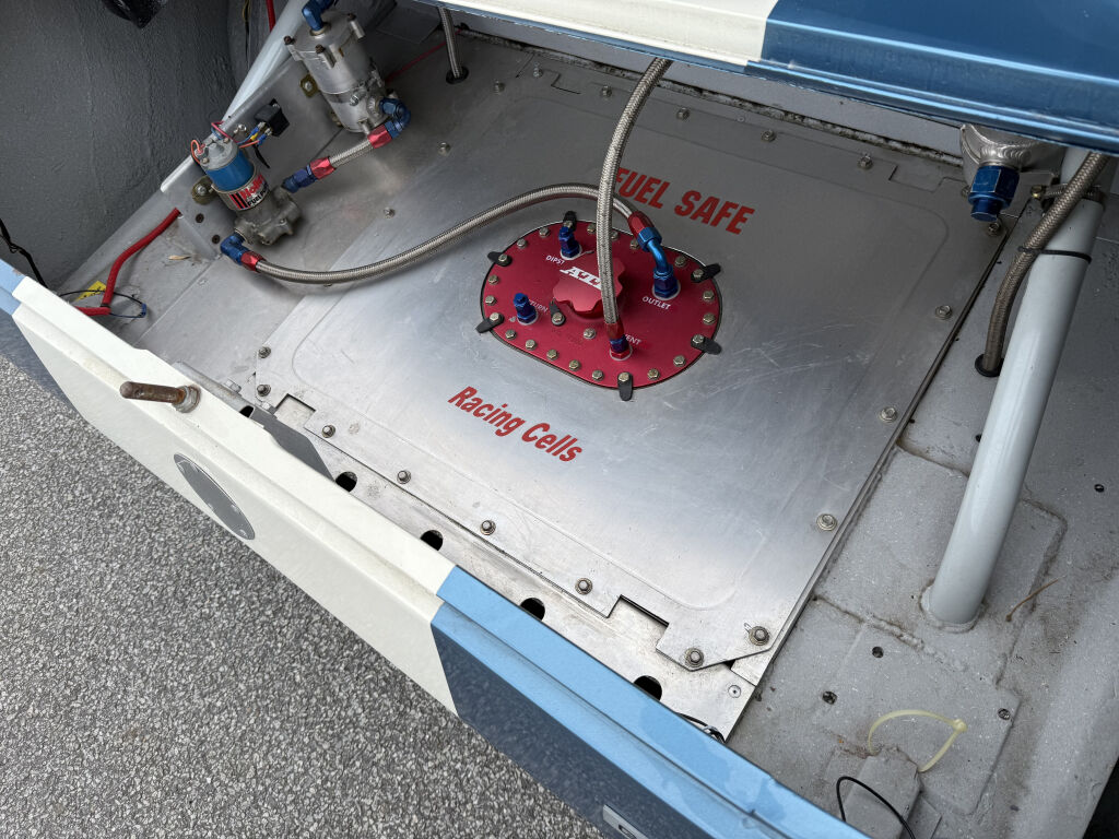 - Moteur V8 5.7L optimisé avec pistons JE, bielles et vilebrequin Eagle, carburateurs Holley 850 CFM, culasses en aluminium et pompe à eau Edelbrock, carter d'huile AVAID 12 litres, allumage MSD et gros radiateur de refroidissement en aluminium…