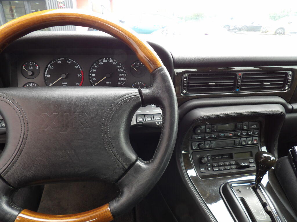 - Teinte noire avec intérieur cuir et moquette assortis, coques de rétroviseurs chromées et jantes 17 pouces spécifique à cette version suralimentée " XJR6 "