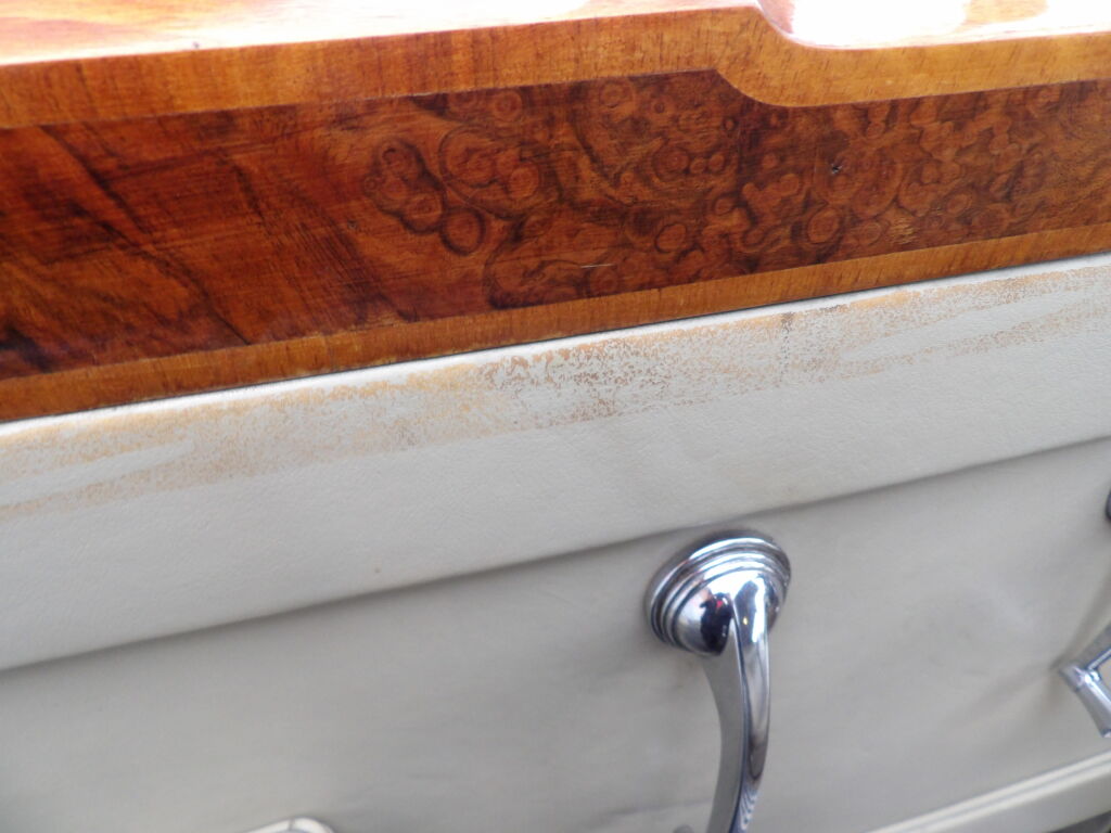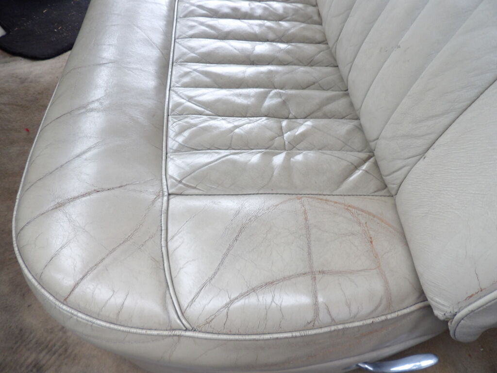 - Boiseries en bon état et très belle sellerie en cuir d'origine, à traiter et à reprendre au niveau de l'assise conducteur, présentant une patine de bon aloi