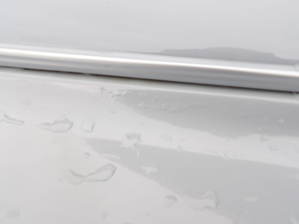 - Élégante configuration, grise avec intérieur cuir beige et tablettes arrière pique-nique en bois précieux