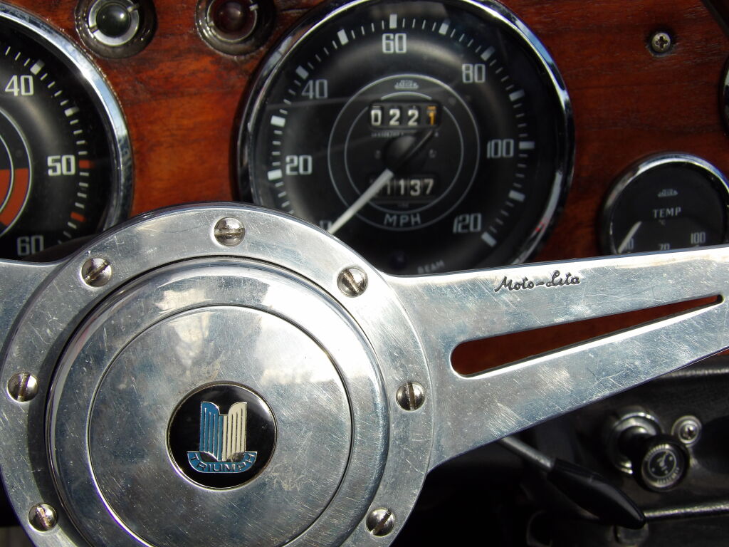 - Volant Moto-Lita, jantes à rayons, double sortie d'échappement, couvre capote, couvre-tonneau, certificat BMIHT, dossier de factures et manuel d'utilisation