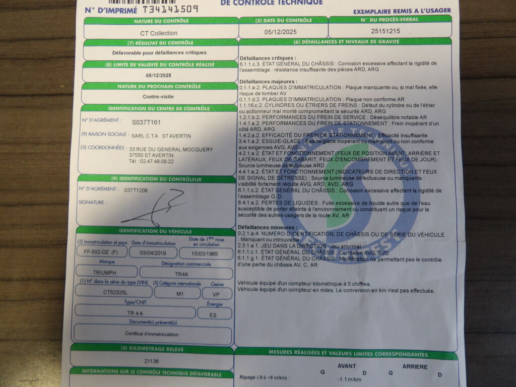 TR4 A - 1965, BLANC, 11 cv, mise en circulation le 15/03/1965.