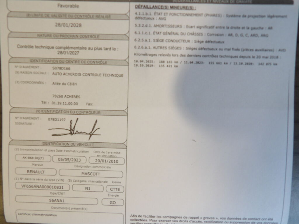 MASCOTT BENNE DXI 130, BLANC, 10 cv, mise en circulation le 20/01/2010.